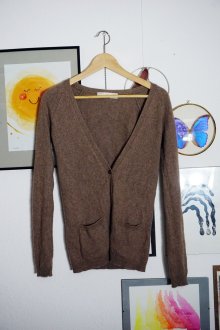 Strickjacke 100% Wolle Wolljacke Tracht braun Knöpfe M 38 Taschen Cardigan