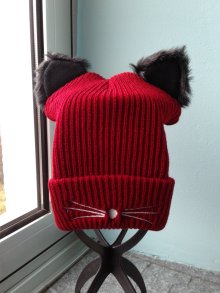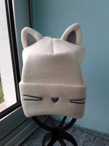 Damen Mädchen warme Mütze "Kätzchen" mit Fellohren bestickt wie neu ungetragen