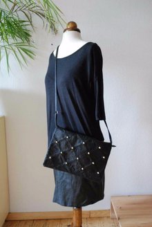 schwarze Umhängetasche / Clutch mit Nieten. Neu