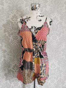 Shein kurzer Jumpsuit Gr. M Patchwork Muster Wickel - Optik Neu