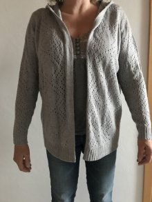 Strickjacke Kimono 44 grau Lochmuster Cardigan mit Kapuze