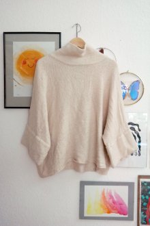 Mango Suit Wollpullover Wolle Kimono Ärmel Rolkragenpullover creme altweiß onesize
