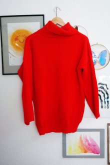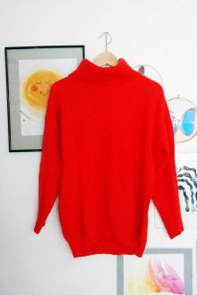 Strickpullover orange rot Rollkragenpullover Langpullover L 40 Pullover