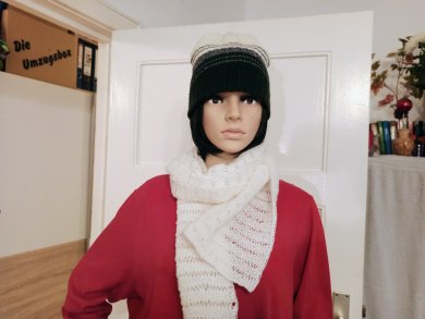 Schöner Mütze mit Schal schwarz-weiß