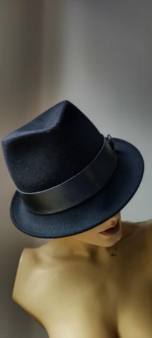 Wollhut mit Lederband, Gr.57, schwarz