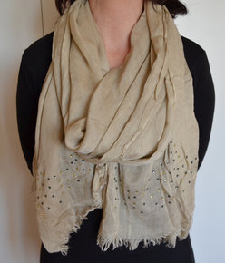 beiger Pashmina-Schal mit blau-lila Muster an den Enden