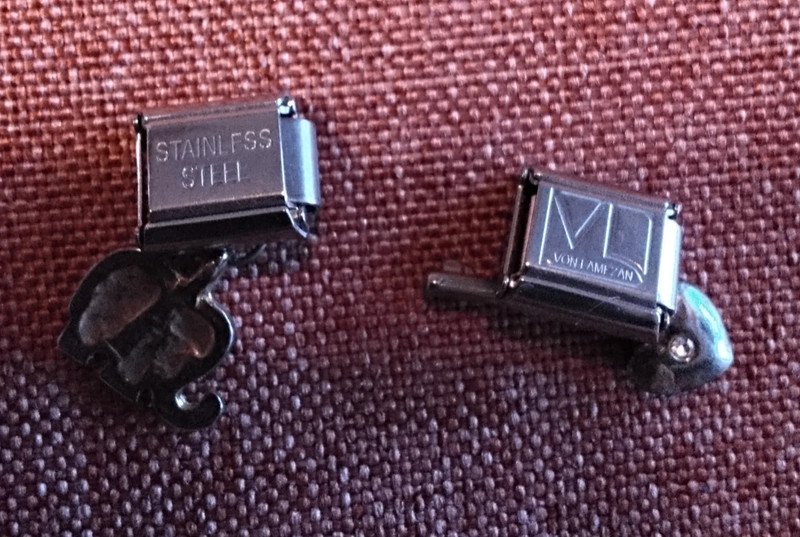 Zusätzlich gebe ich 3 verschiedene nicht originale Edelstahl Charms ab. Es handelt sich um: