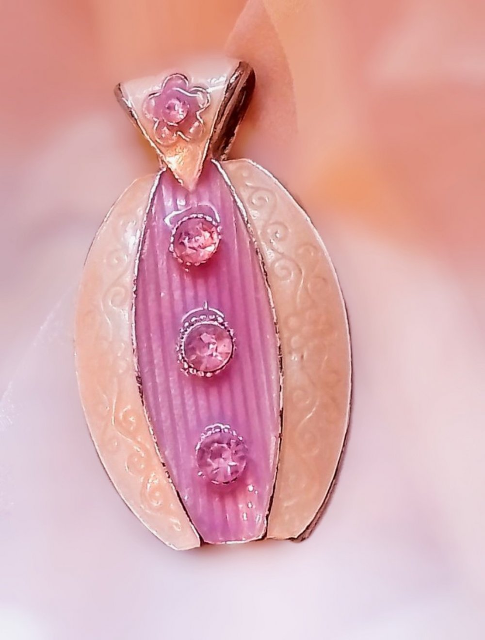 Wunderschönes, einzigartiges Mandala Collier in Gold, mit Rosenquarz und Amethyst