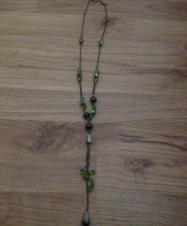 Lange Kette mit grünen steinen& Rosen