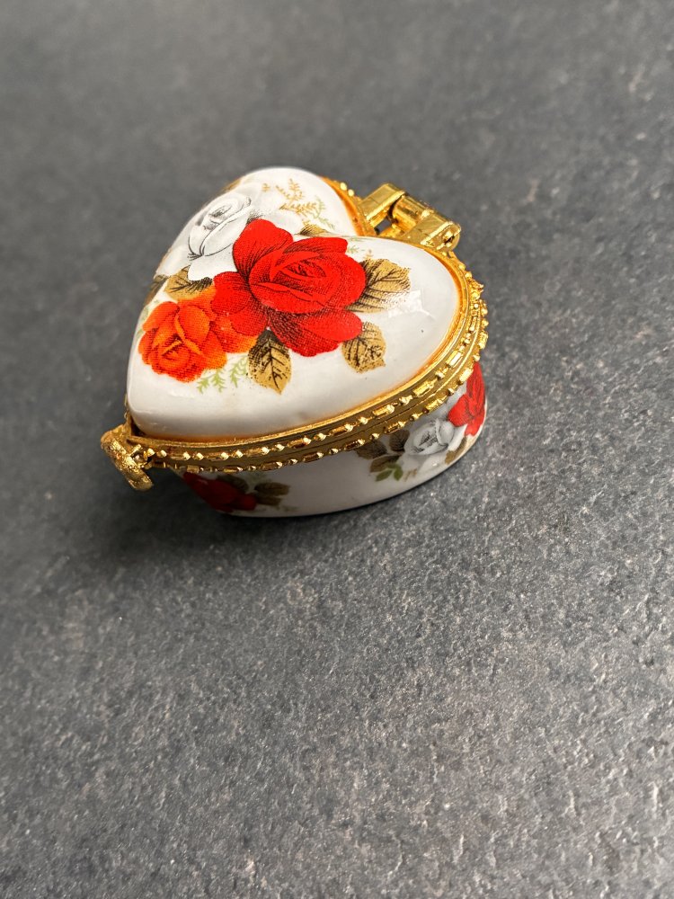 Deko Herz Dose Schmuckdose Deckeldose Keramik Pillendose Herz Rosenblüten Decor Neu