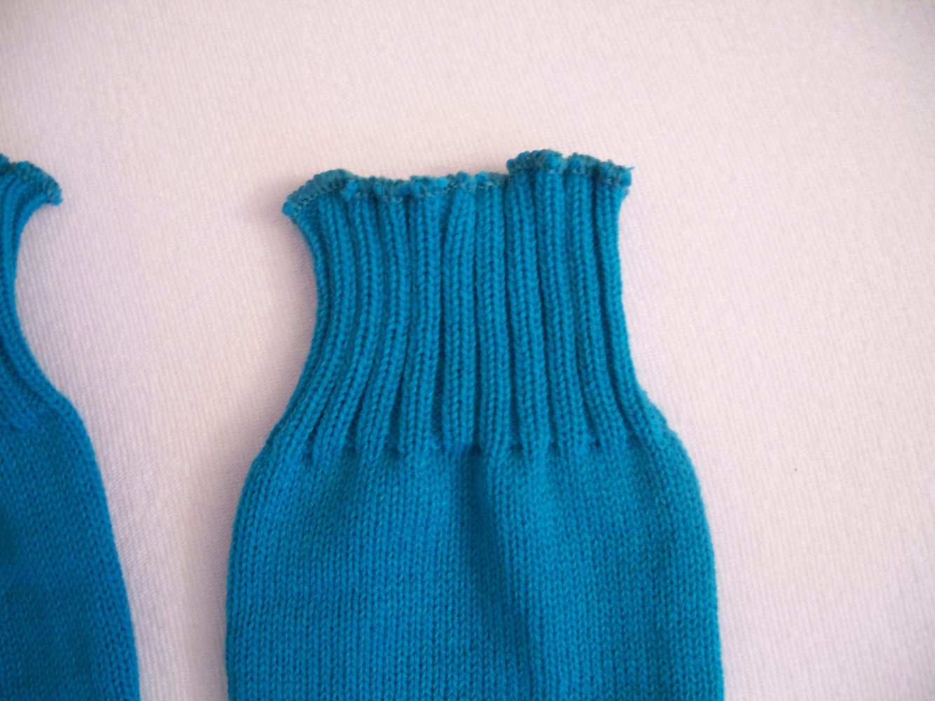 Die Gummibänder sind noch sehr gut intakt. An den Rändern geht die Farbe wirklich ins Grüne über, das war aber schon so, als meine Mutter sich die Stulpen gekauft hat.