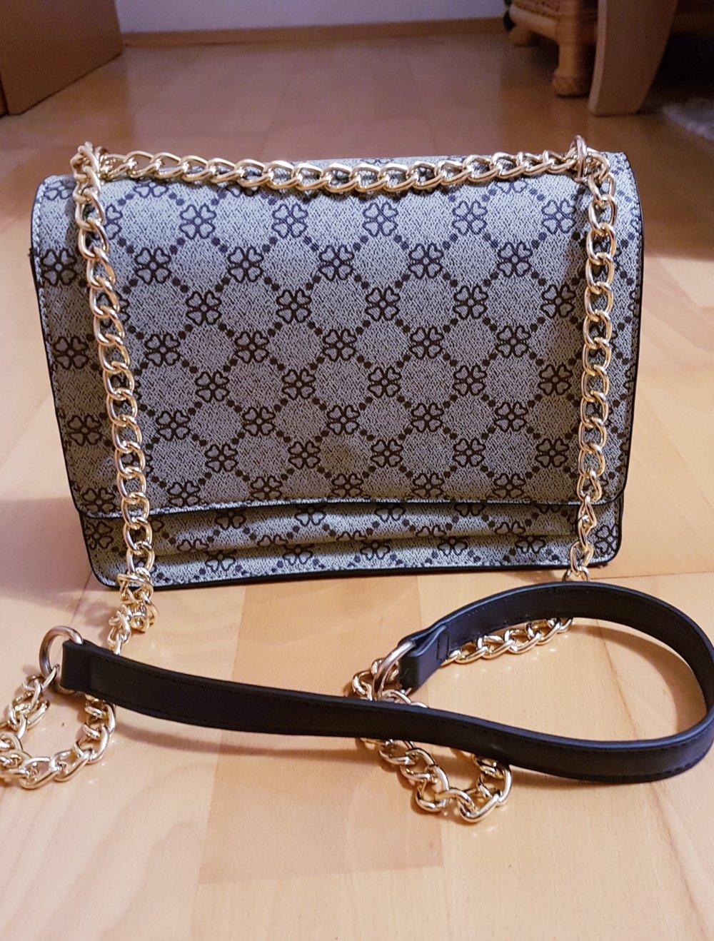 * kleine schwarze Umhängetasche gesteppt mit Gliederkette