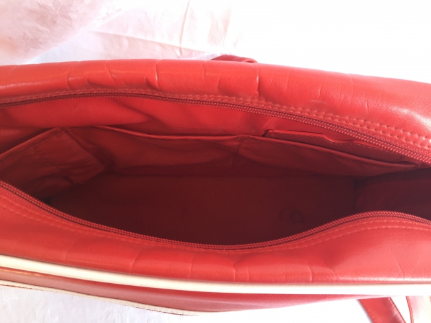 Da ich die Tasche eine Zeit lang sehr oft getragen habe, hat sie Gebrauchsspuren. An der Vorder- und Rückseite sind ein paar Flecken, die beim Tragen allerdings nicht sehr auffallen. Im großen Fach ist ein Fleck, wie man auf dem Bild sehen kann. Die Reißverschlüsse funktionieren einwandfrei. Der Gurt ist verstellbar.