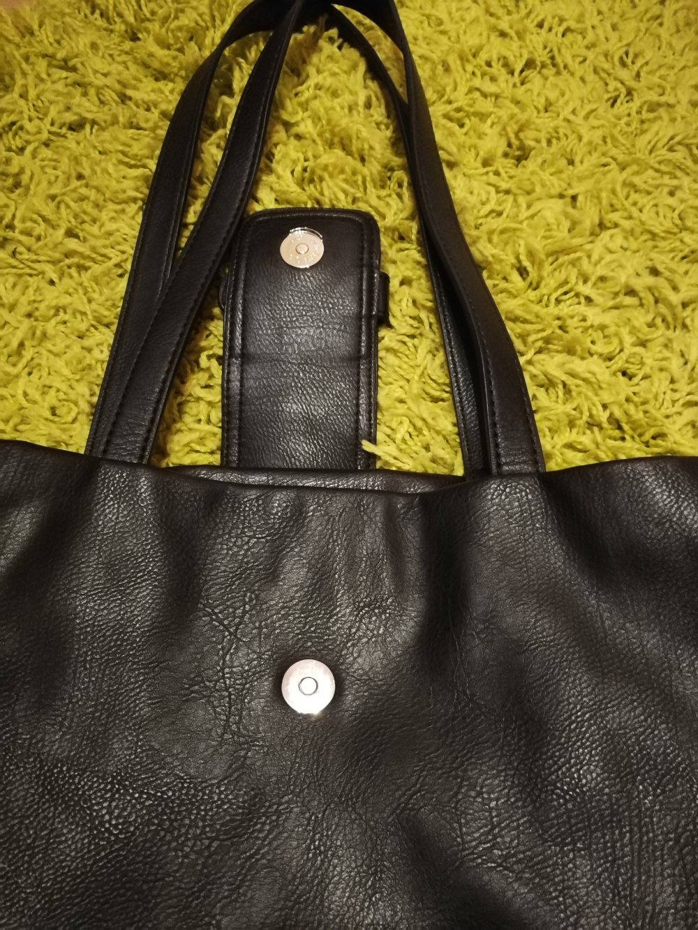 Ich biete diese schwarze Tasche von Esprit an. Sie besteht aus Lederimitat und hat einen Magnetverschluss. Die Tasche hat ein Hauptfach, eine Innentasche mit Reißverschluss und eine "Handytasche".