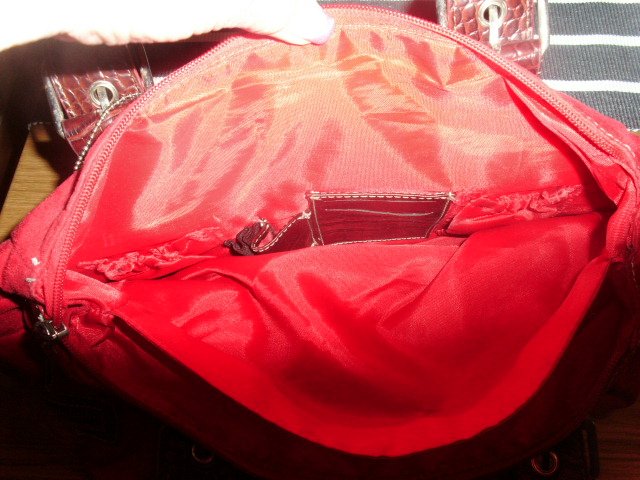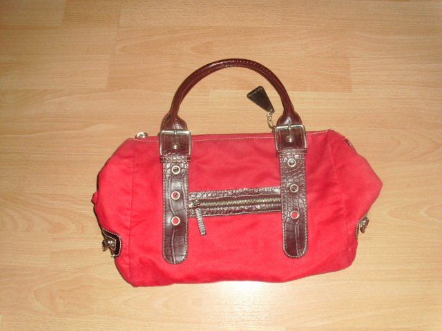 Biete hier eine Handtasche von Betty Barclay an. Sie ist rot ( kräftig ) und das Material fühlt sich wie weiches Wildleder an. Die Tasche hat zwei Trageriemen aus braunem Kunstleder, diese können auch noch verlängert werden. Auf der vorderen Seite befindet sich eine kleine Tasche mit Reißverschluss. Seitlich hat sie Zierreißverschlüsse. Die Tasche wird oben mit einem Reißverschluss geschlossen. Sie hat zwei große Haupttaschen und innen zusätzlich mehrere Steckfächer und eine Tasche mit Reißverschluss. Außerdem hat sie innen eine Vorrichtung mit Karabiner für Schlüssel. Der Taschenboden besteht aus braunem Kunstleder mit 5 Stellnieten. An der Tasche hängt ein silbernes Firmenemblem. Die Tasche wurde nicht sehr oft benutzt und ist sehr gut erhalten.