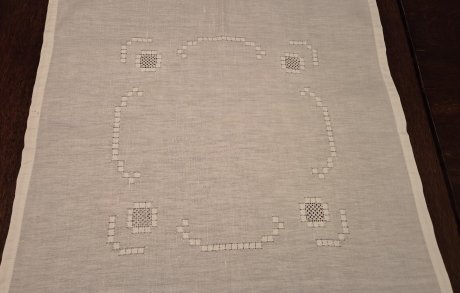 Tischdecke alt Stickerei weiß 63 cm x 67 cm