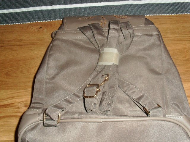Biete hier einen kleinen Cityrucksack für Damen an. Er ist taupe ( ganz helles braun) und besteht aus Synthetik, also wasserfest. Die obere Klappe ist mit goldenen Blättermotiven versehen. Der Rucksack hat ein großes Hauptfach und innen eine kleine Tasche mit Reißverschluss. Er bietet Platz für alle Dinge die man für unterwegs braucht. Außerdem hat der Rucksack größenverstellbare Trageriemen und einen festen Boden. Der Rucksack ist neu und unbenutzt, die Riemen sind noch zusammengelegt. Es war ein Geschenk, aber gefiel nicht.