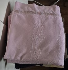 Tischdecke alt Stickerei vintage rosa 127 x 227 cm