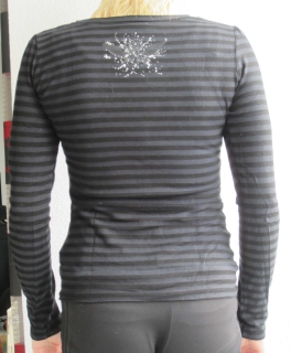 schönes schwarzes Longshirt mit Streifen - V-Ausschnitt