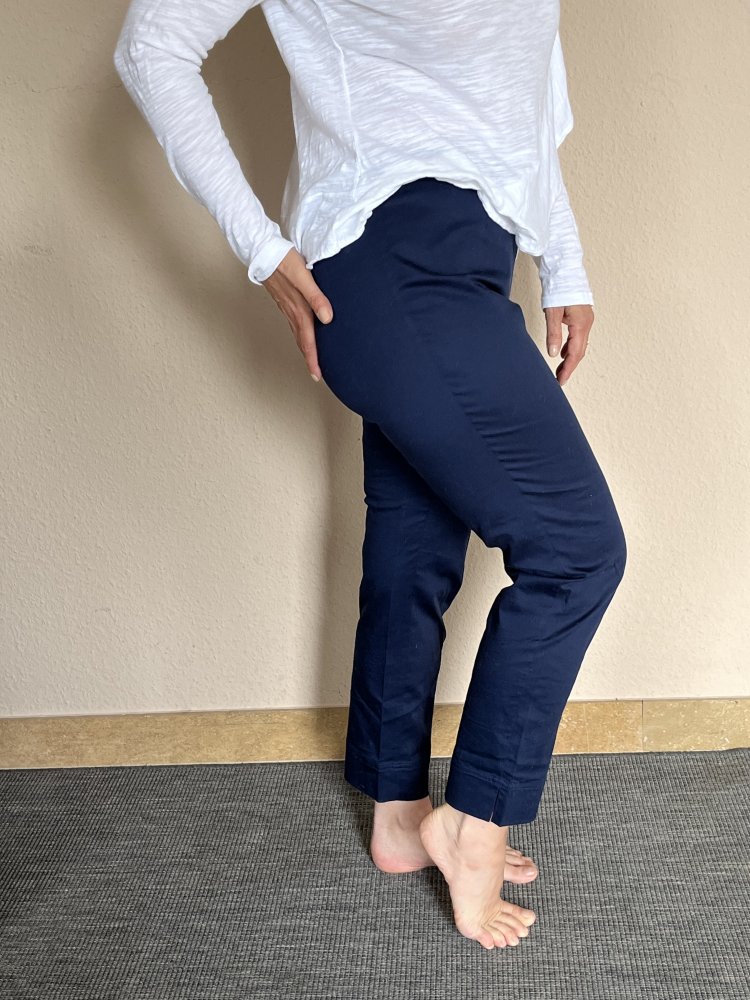 Modell trägt eine Gr.42, deshalb ist ihr die Hose etwas zu eng, aber es sollte lediglich der Schnitt gezeigt werden