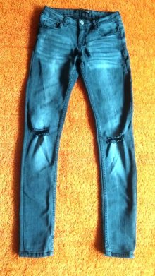 Damen Hose 7/8-Jeans Stretch Gr.XS Grau verwaschene Optik One Love