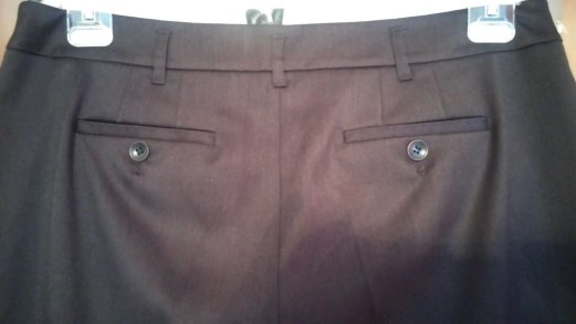 Vorne befinden sich drei Taschen, hinten zwei aufgesetzte Gesäßtaschen. Alle Taschenkanten sind mit Nieten verstärkt. Geschlossen wird die Jeans vorne mit 3 Druckknöpfen + Reißverschluss. Ein stylischer Hingucker, vielseitig kombinierbar und nur selten getragen.