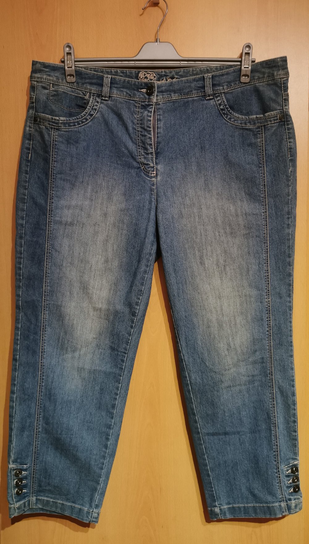 Ich biete diese Jeans in der Größe 48 an. Sie ist von C&A, ist blau und hat eine 7/8 Länge. Die Hose hat jeweils zwei Eingriffs- und Gesäßtaschen. Die Jeans ist ungetragen, wurde nur gewaschen, daher neu.