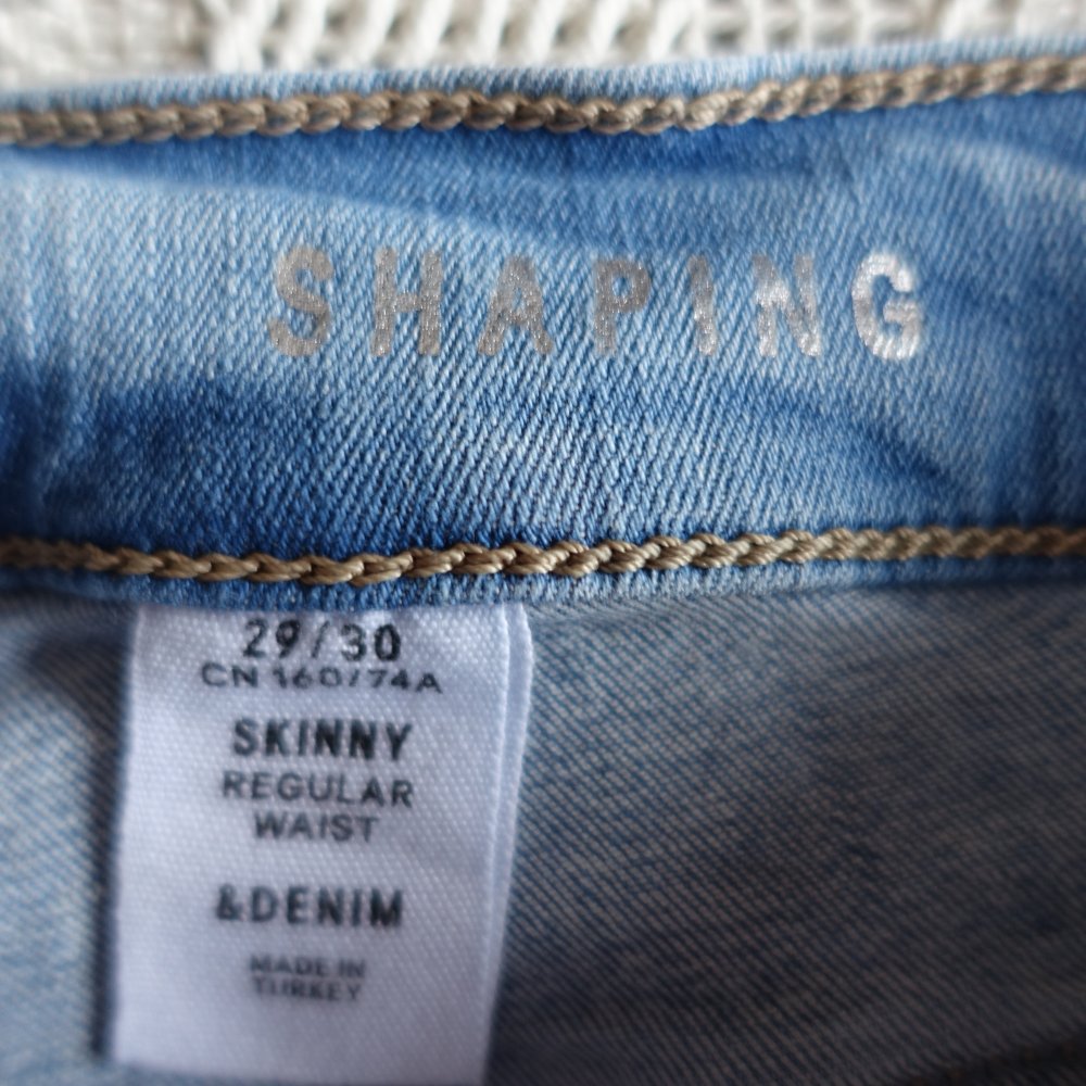 Jeans, Hose, Röhrenjeans, Shaping, Skinny Regular Waist, Gr. 29/30, & Denim, blau, 91 % BW, 6 % Polyester, 3 % Elasthan, Bundweite ca. 34 cm ungedehnt, Innenbeinlänge ca. 74,5 cm, Gesamtseitenlänge ca. 97 cm, 19,00 Euro, individueller Versand/Warensendung 3,00 Euro möglich, sofern es paßt, zeitnahe Antwort, rauch- und tierfreier Haushalt, Privatverkauf, Rücknahme ausgeschlossen (6994/6995 - 7002, 13, 1017, 9943?, nur für mich)