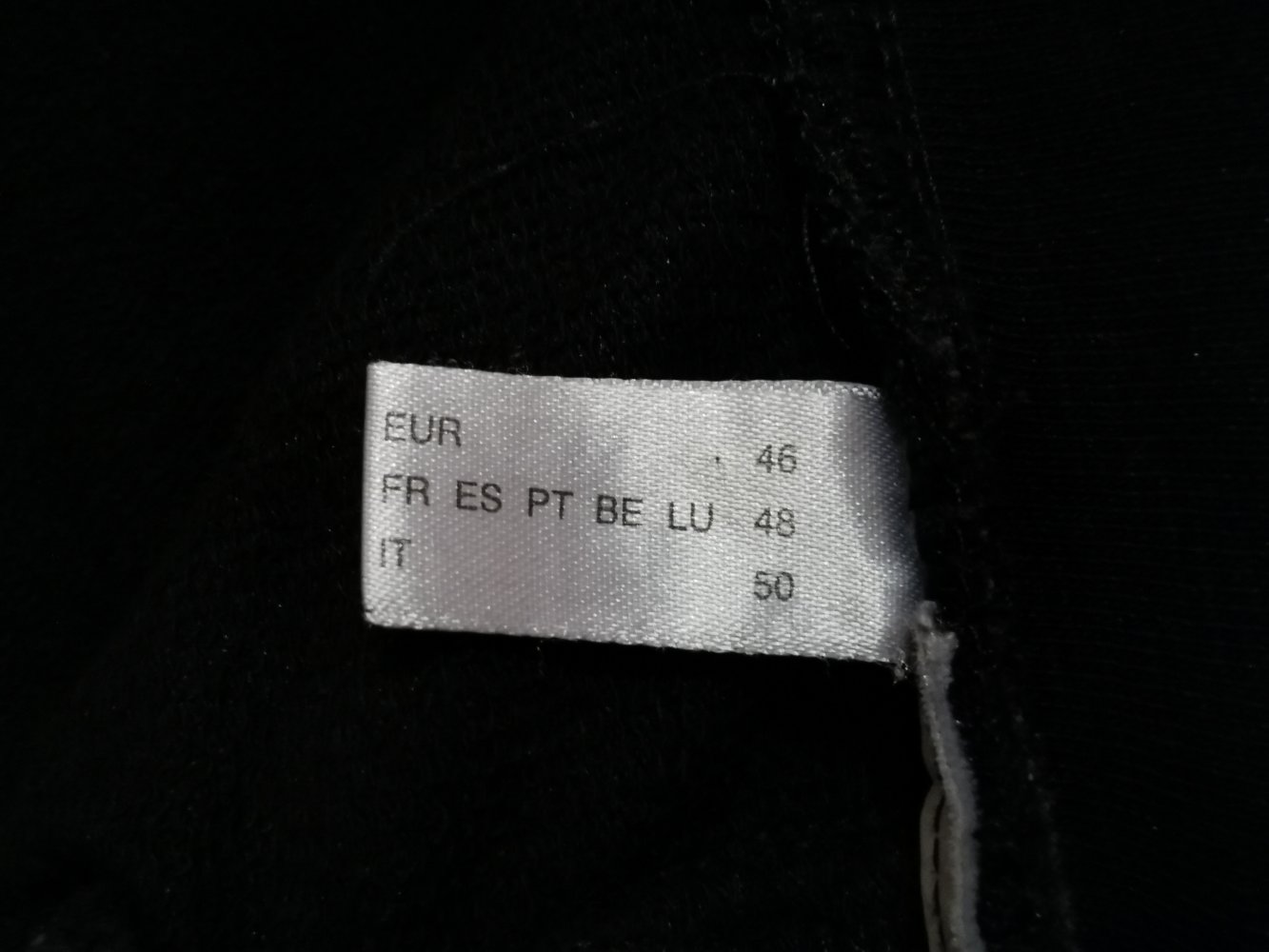 Die schwarze Hose ist ungetragen und wurde lediglich nur gewaschen. Die schwarzmellierte Hose ist getragen und hat Pilling im Schritt. Dennoch ist sie in einem sehr gutem Zustand.