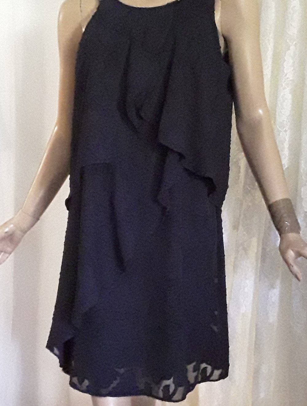 Nachtblaues Stufen- Kleid mit bestickten Trägern
