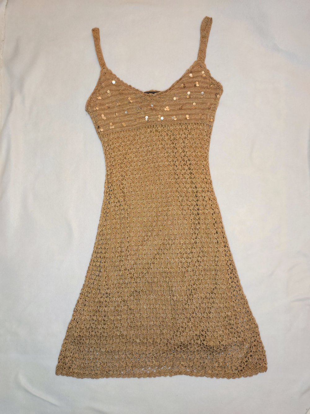 Handgehäkeltes Metallic-Minikleid / Trägerkleid – ONE SIZE