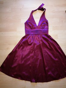 Elegantes, violettes, rückenfreies Kleid; hat schwarzen dünnen Unterrock; von Orsay in S (Größe steht nicht mehr drin, bin mir aber sicher)