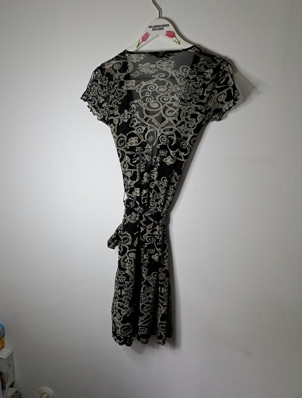 Ich verkaufe mein Sommerkleid von SURE, schwarz transparent mit abstrakten Mustern. Kein Reißverschluss. Mit Bändern zum Schleife binden.
