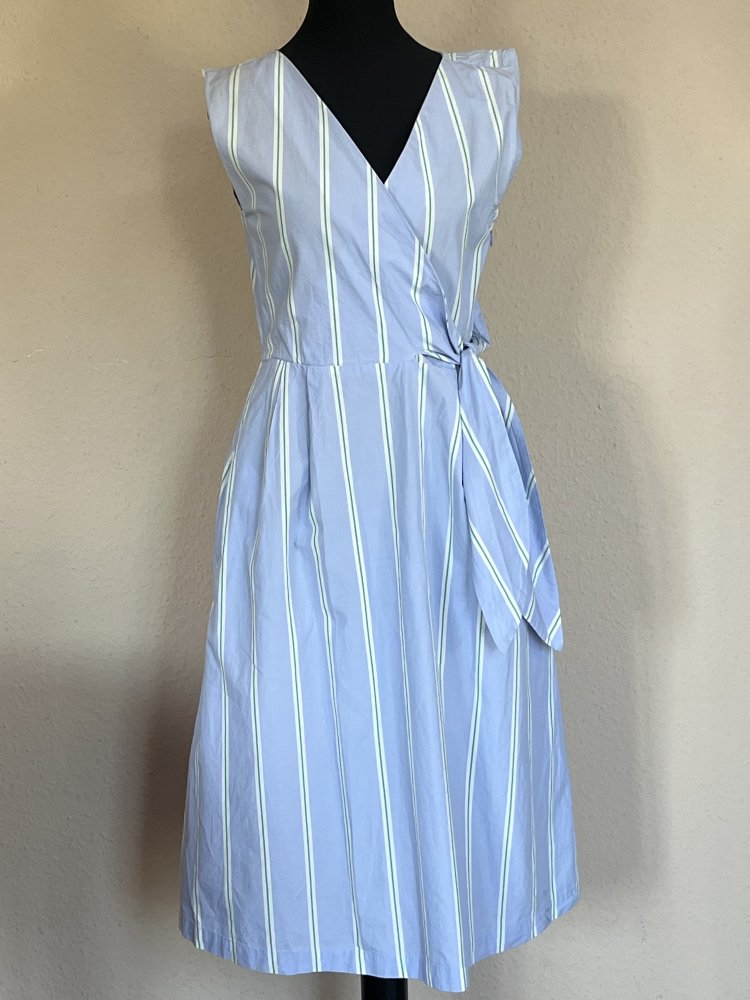 Edc Sommerkleid gestreift mit Wickel Optik Gr.34 hellblau mit grünen Streifen
