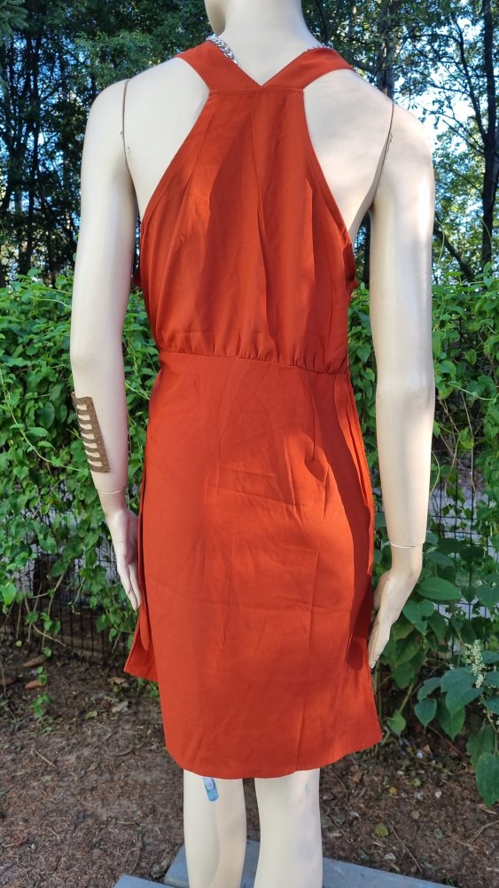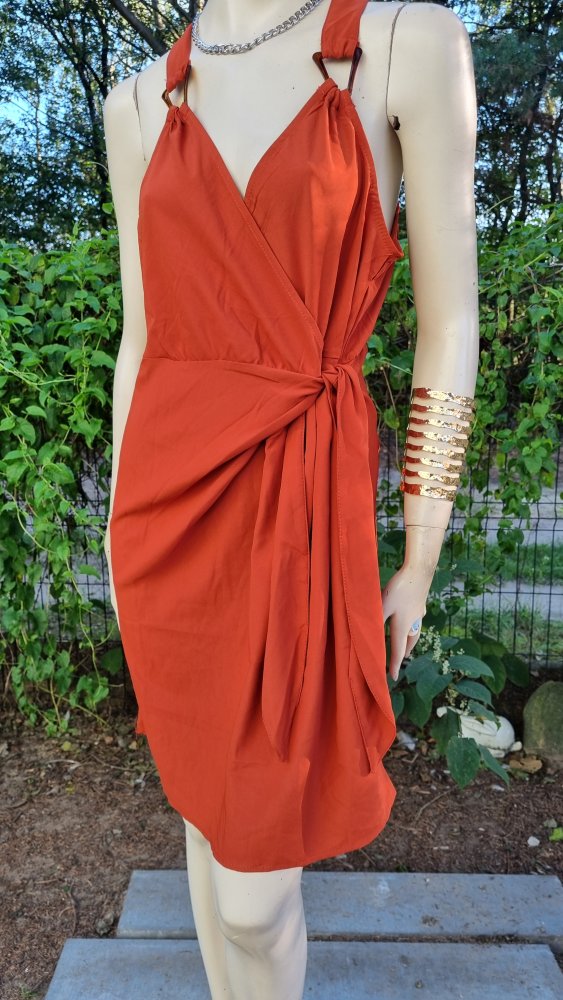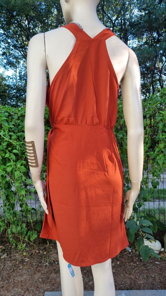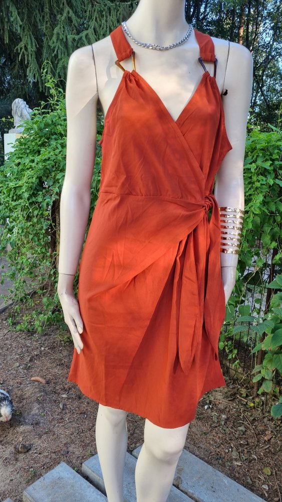 von Achsel zu Achsel ca 48 cm. Taille ca 42 cm. Laenge ab Schulter ca 97 cm. Farbe Rostrot.