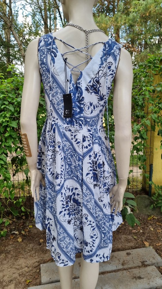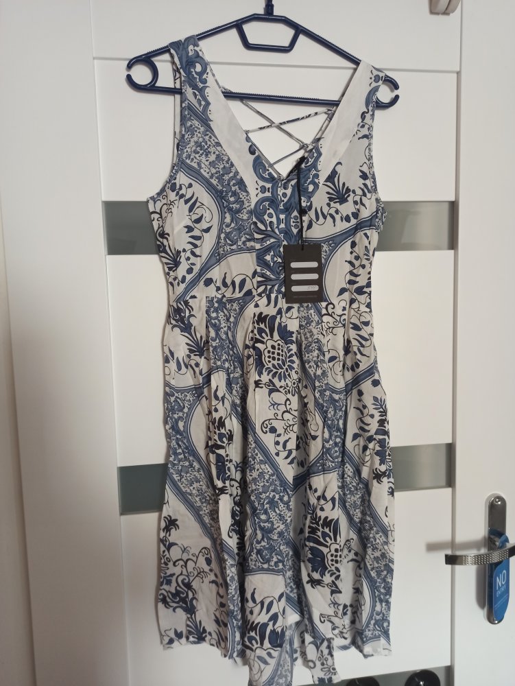 Blend Kleid Gr. 36 / S Sommerkleid Neu Blau Creme Gürtel