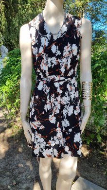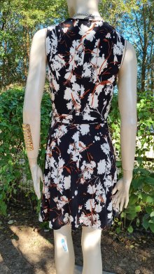 HARPA Neckholder Leinenkleid Gr.S schwarz mit Volants am Saum