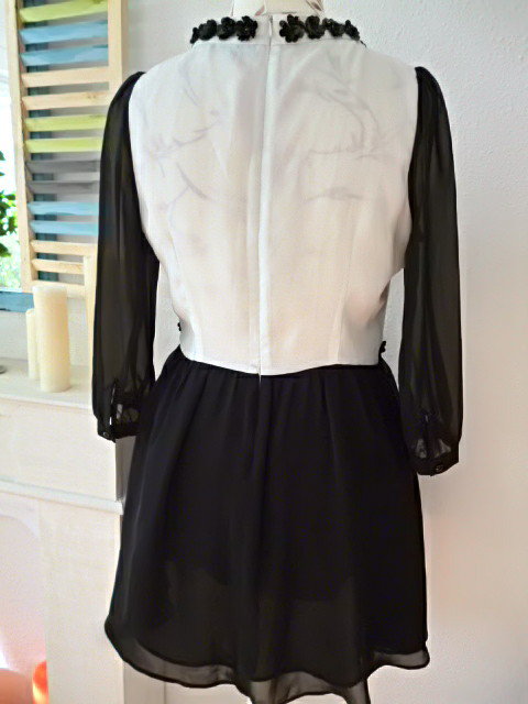 Besonderes Chiffonkleid in schwarz/weiß mit auffälligen Blüten verziert , Originalgröße 42,würde ich aber eher einer Größe 40 empfehlen ,Achsel zu Achsel ca.51cm ,Länge ca.88cm ,super süß!