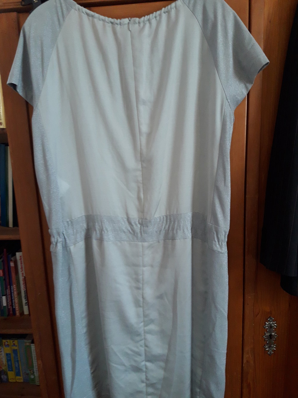 festlich elegantes und dennoch sportliches und bequemes Kleid mit Glitzerdetails an Ärmeln, Seiten, Ausschnitt und Taille. Kordelzug auf Hüfthöhe, verdeckter Reißverschluß hinten, zwei Taschen mit verdecktem Reißverschluß. Rockteil gefüttert. Nur einmal auf einer Hochzeit getragen.