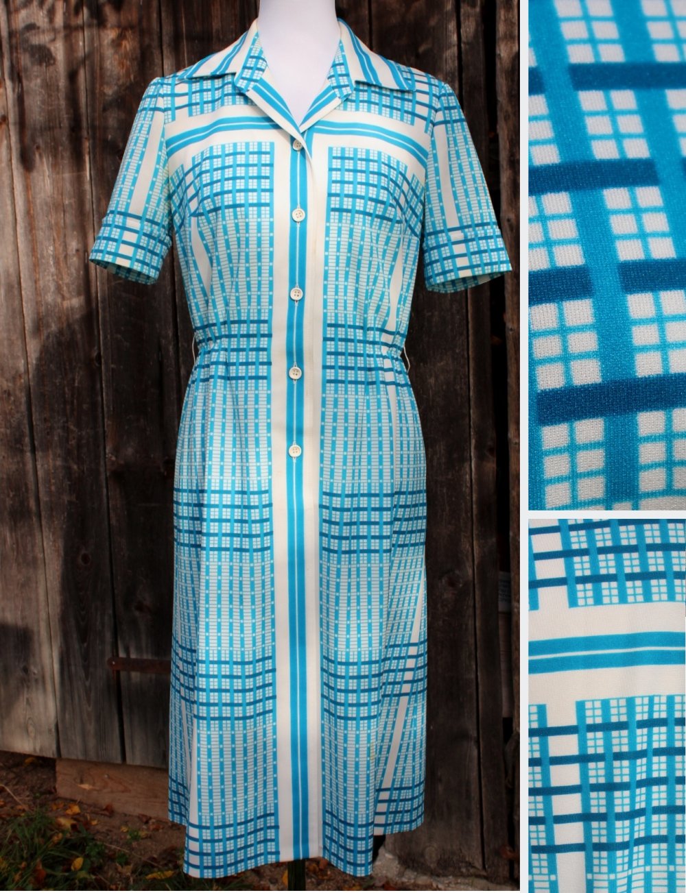 #truevintage #vintagekleid #sommerkleid #1970er #seventies #tailliert #streifenmuster #streifen #karos #weiß #blau #maritim