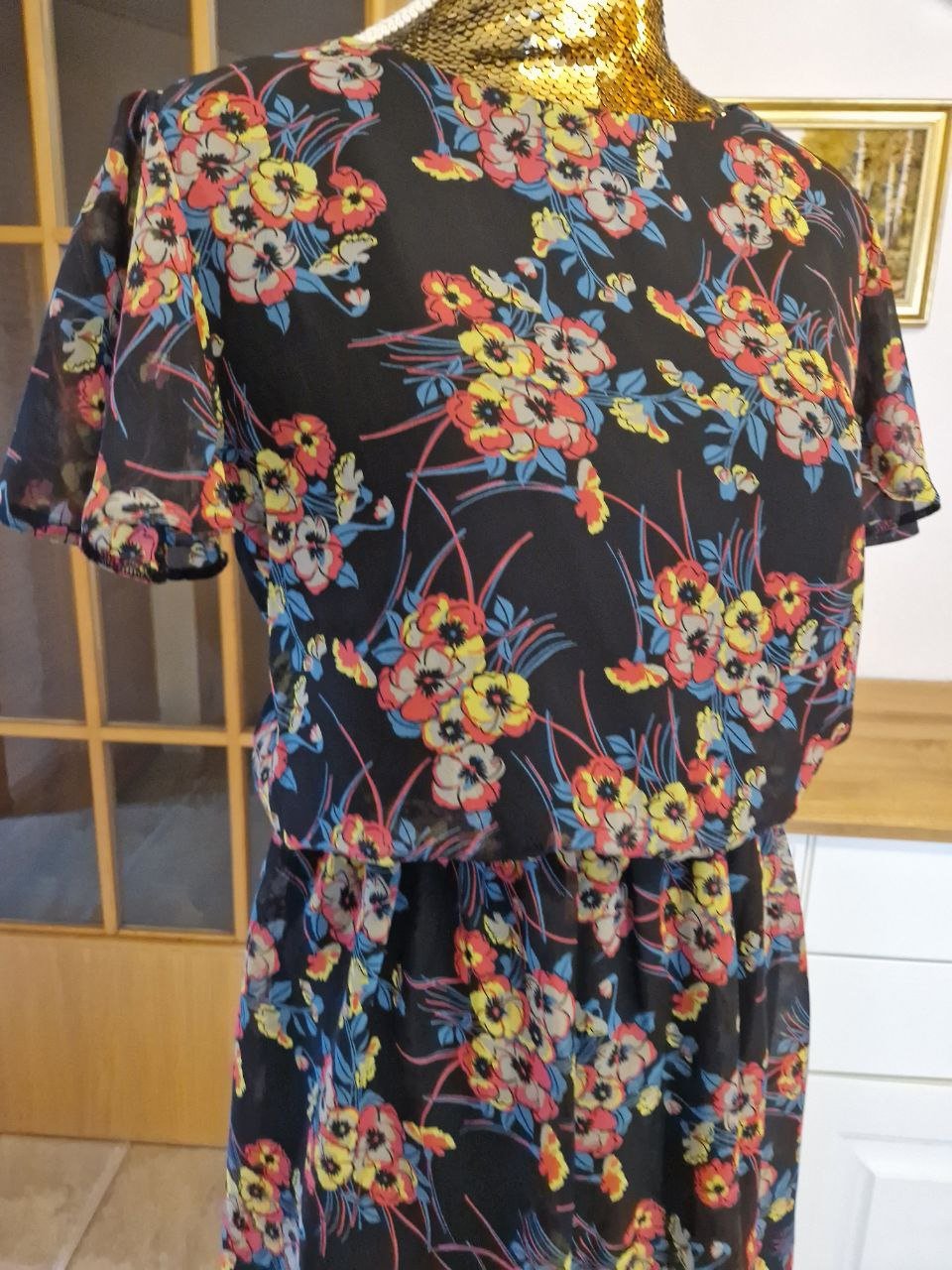 Lockeres Blumenkleid schwarz mit roten Rosen H&M Divided