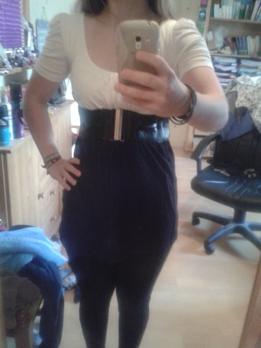 T-Shirt/Kleid schwarz weiß gerafft Gürtel