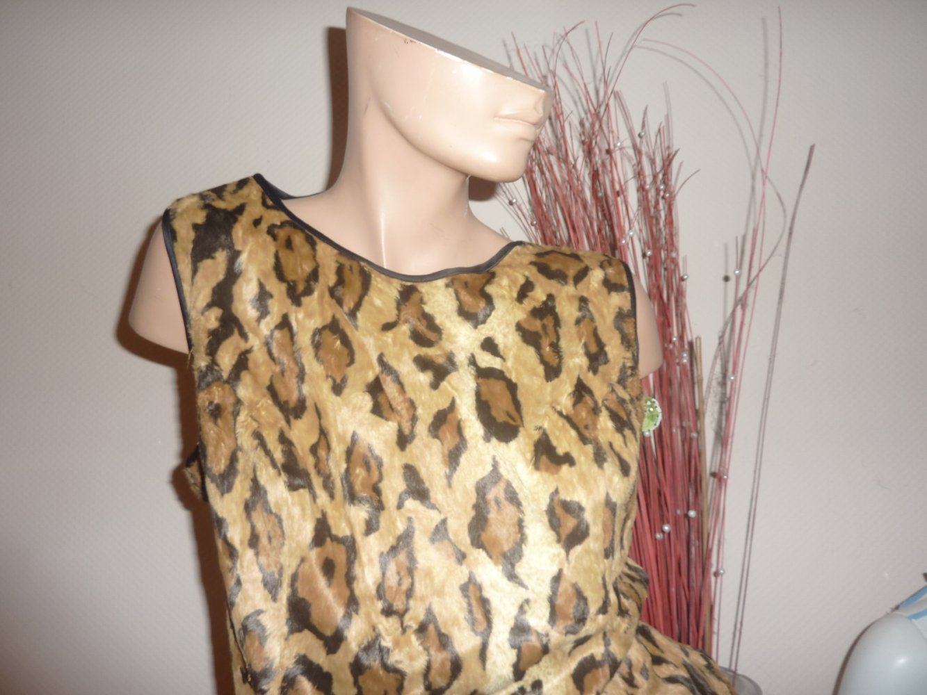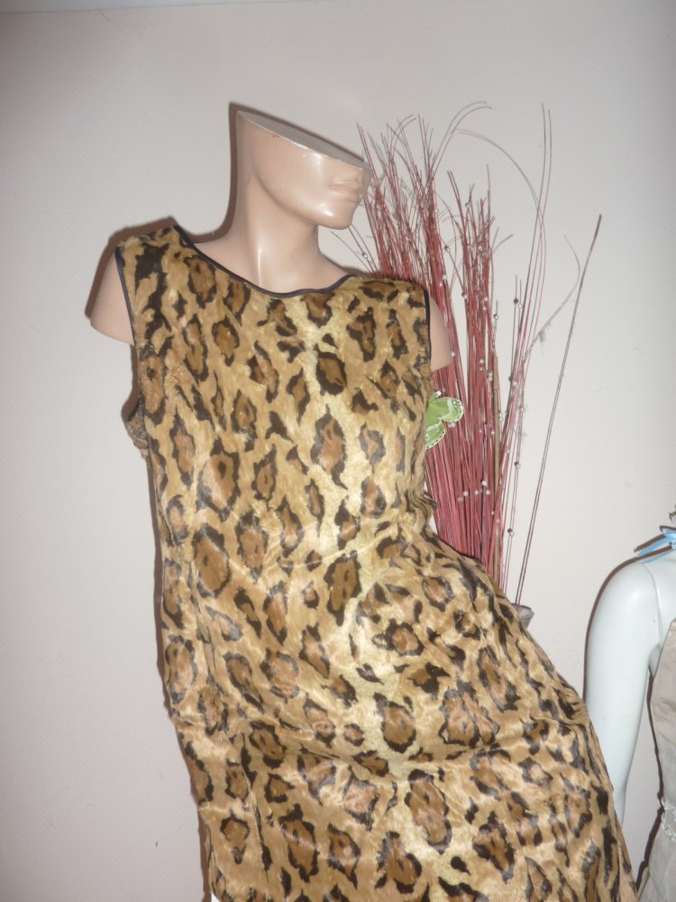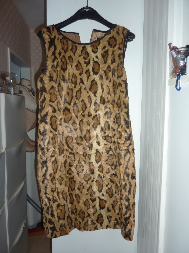 Kleid 44 XL evtl 42 Jones Etuikleid Leo Look braun Winterkleid Felloptik Kunstfell Leoprint