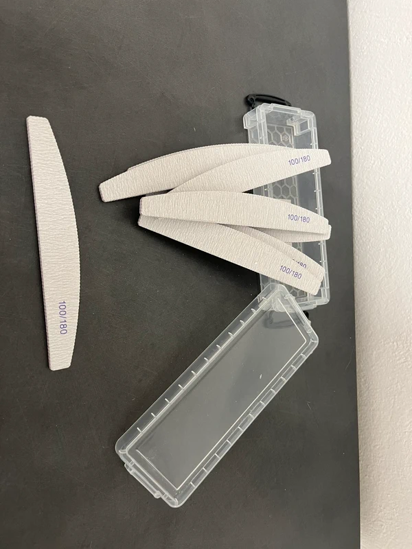 .) Feilen & Vorbereitung: Mehrere Profi-Nagelfeilen (Körnung 100/180) inklusive praktischer Aufbewahrungsbox