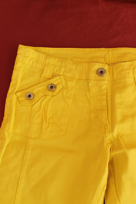 Ich verkaufe hier eine schöne Hose (36/38) in Caprilänge in gelb für eine Freundin. Sie ist aus einem festen ( jeansähnlichem) ,aber elastischen Material.