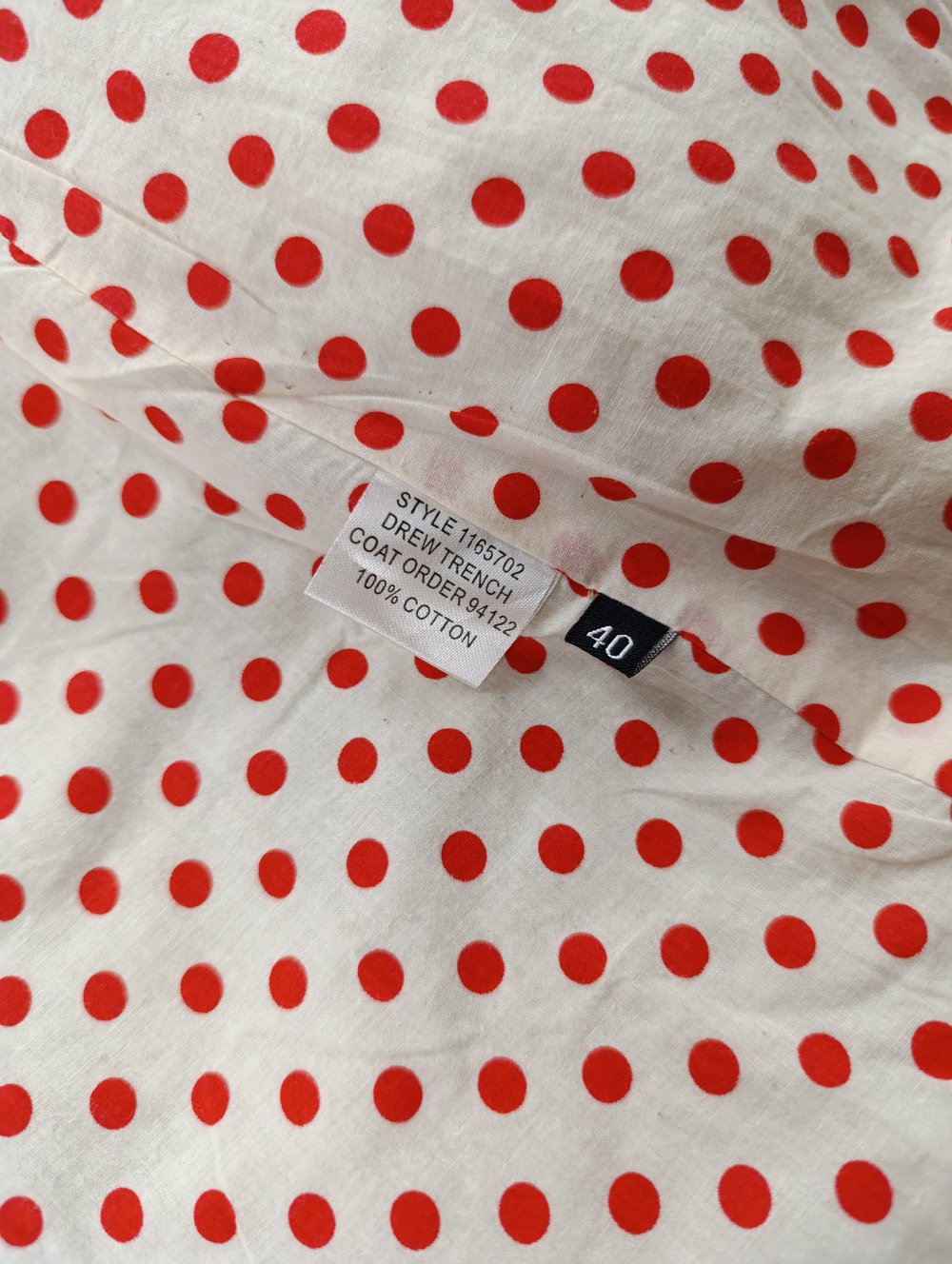 Innenfutter: Eine Überraschung erwartet Sie im Inneren – ein auffälliges und effektvolles Futter mit großen roten Punkten (Polka Dots), das dem Mantel einen spielerischen, individuellen Touch verleiht.