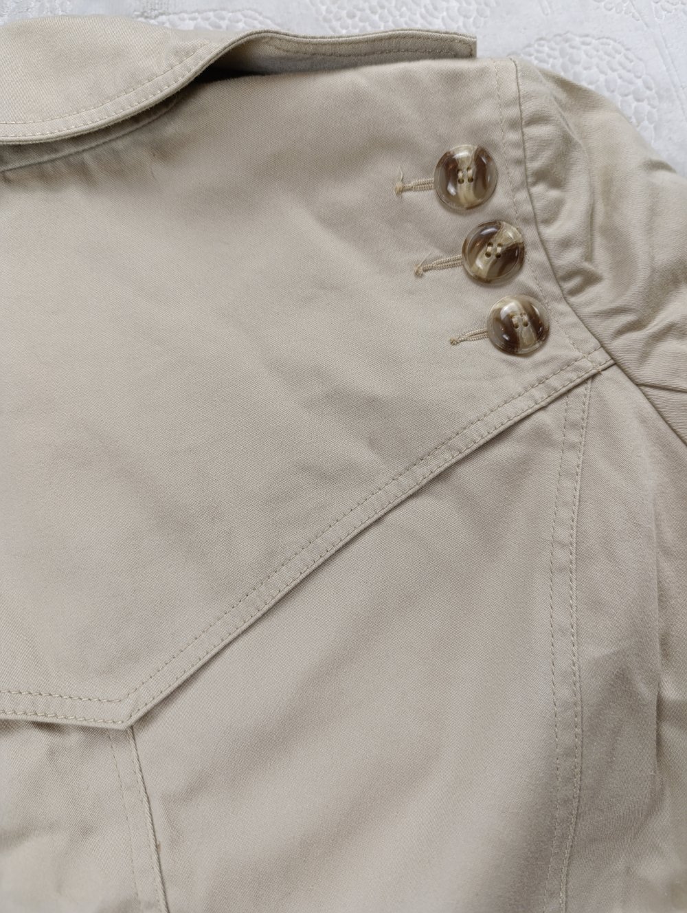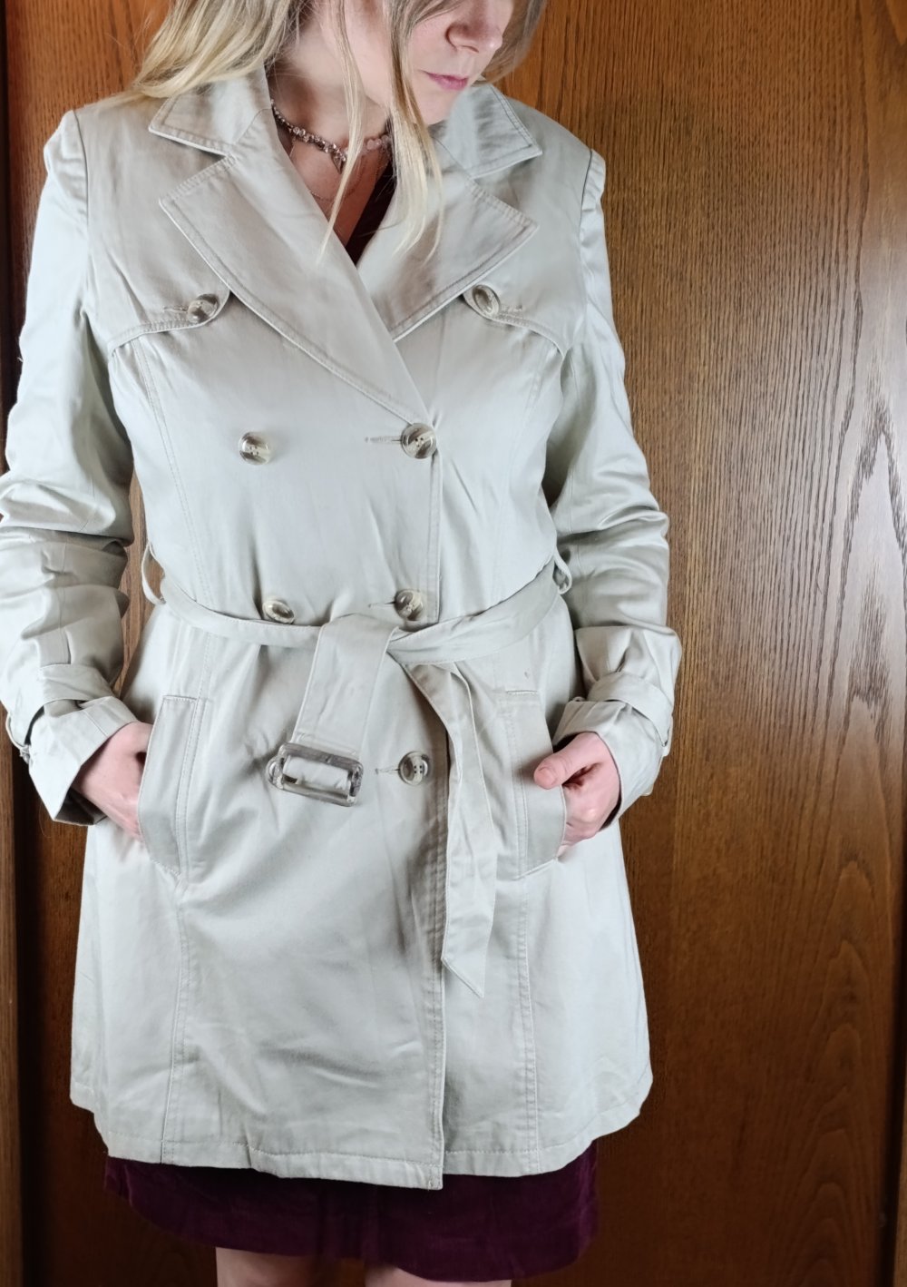 Ich verkaufe einen eleganten, zweireihigen Trenchcoat in der klassischen hellbeigen (sandfarbenen) Farbe – die perfekte Wahl für einen stilvollen Übergangs-Look!