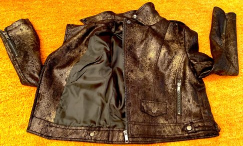 NEU Damen Jacke Bikerjacke Lederimitat mit Nieten Gr.S Braun/Schwarz Animalprint