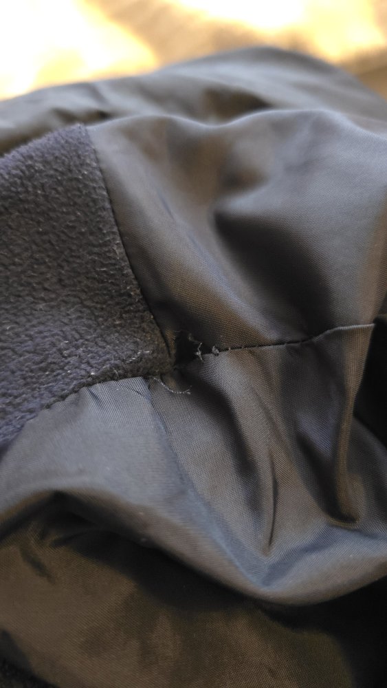 Innen ist auf der linken Schulter eine Naht offen. Mit ein bisschen Geschickt sollte das kein Problem sein. Da ich leider ungeschickt bin, überlasse ich euch das. Abgabe deshalb unter Wert.