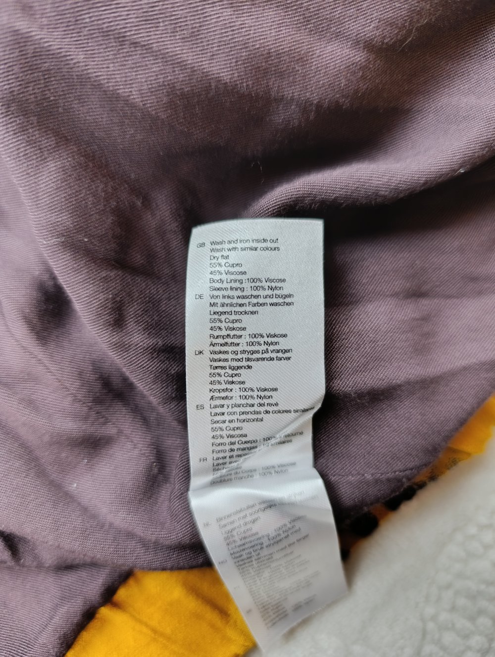 Die Jacke hat einen luxuriösen, leicht glänzenden Stoff (Cupro/Viskose-Mischung), der sich seidig anfühlt. Das Innenfutter ist in einem eleganten dunklen Braunton gehalten. Ein auffälliges Statement-Piece, das perfekt zu Jeans oder einem schlichten Kleid passt. Sie ist ideal für die Übergangszeit oder kühle Sommerabende.